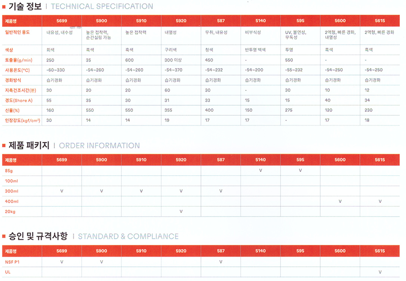 ≫ 물성과 경화 속도에 따라 제품을 선택할 수 있음